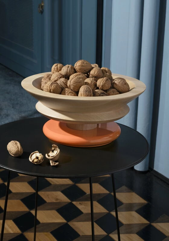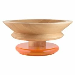 Alessin Sottsass-vati on poikkeuksellisen ilmaisuvoimainen tarjoiluastia, jonka on suunnitellut italialaisen muotoilun legenda Ettore Sottsass. Pientä toteemia muistuttava lehmuksesta valmistettu vati muodostuu maalatusta jalustasta ja tilavasta kulhosta, jolle voi asettaa niin hedelmiä ja herkkuja kuin pikkuesineitä ja koristeitakin.
