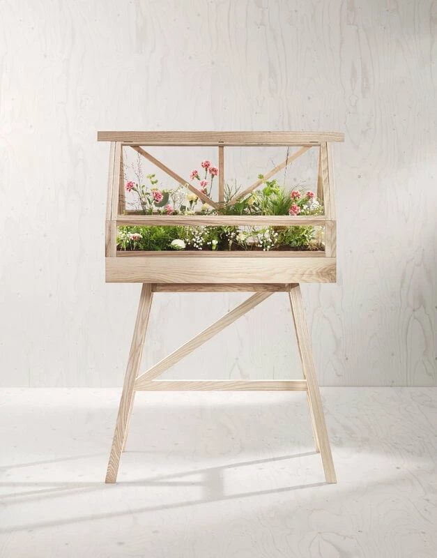 Opiskellessaan Ruotsissa muotoilijat inspiroituivat ympäröivästä luonnosta ja halusivat luoda sille tilan myös kodin sisäpuolelle. Syntyi saarnipuinen kasvihuone, jonka kompakti koko sopii vihreiden miniatyyrimaailmoiden sommitteluun.