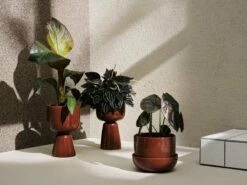 Design House Stockholmin Greenhouse asettaa kasvit jalustalle ja suojelee niitä veistoksellisella lasikatollaan. Atelier 2+:n Worapong Manupipatpong ja Ada Chirakranont suunnittelivat Greenhouse-kasvitelineen alun perin Wallpaper-lehden vuosittaiseen Handmade-näyttelyyn, joka juhlistaa korkeatasoista käsityötaitoa.