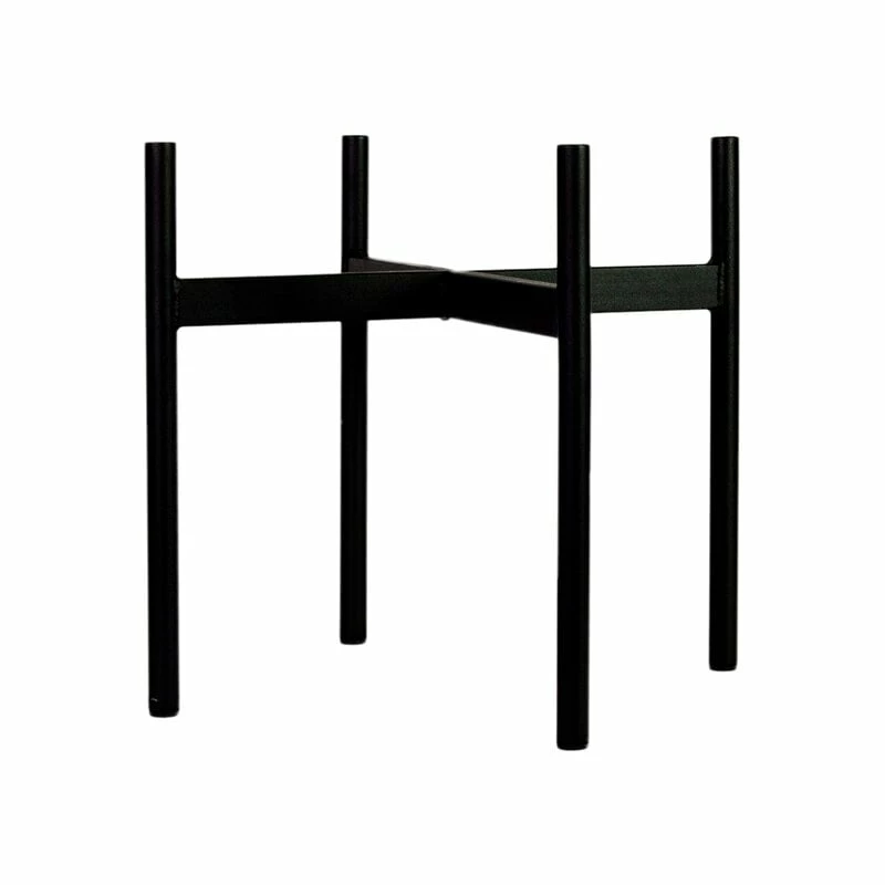 Elementan Klorofyll-sarjan kukkaruukku ja jalusta muodostavat yhdessä viehättävän kasvitelineen, joka tarjoaa tyylikkäät puitteet monenlaisille viherkasveille. Harmaa ruukku on valmistettu betonista ja geometrinen jalusta mustaksi jauhemaalatusta metallista.