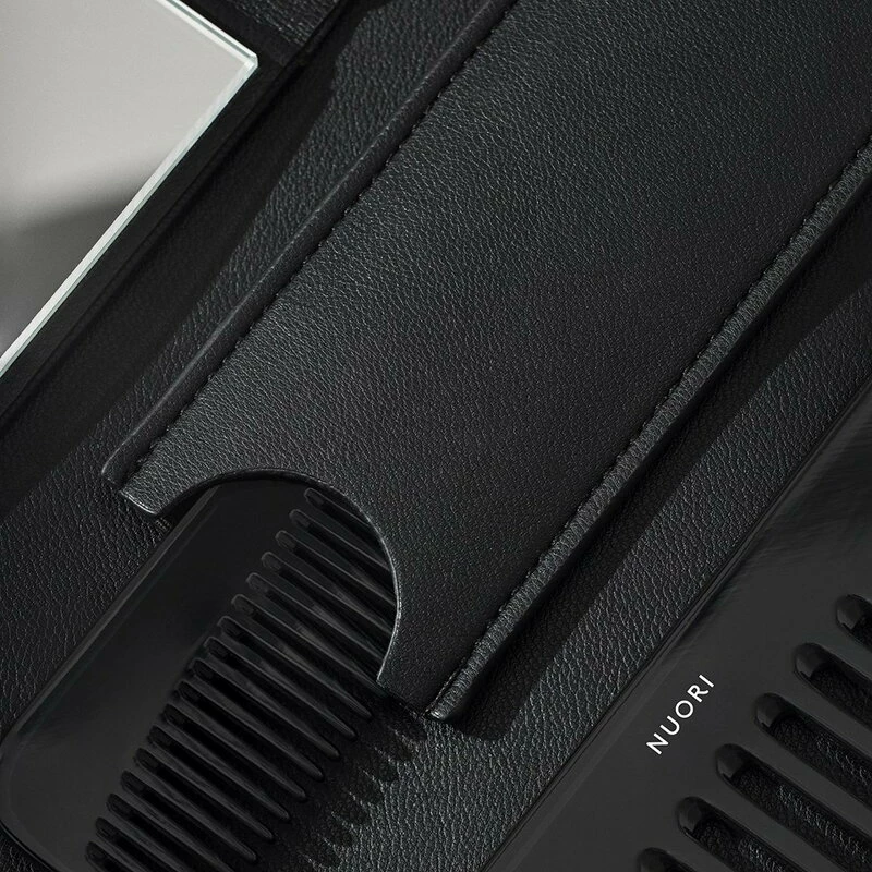 Nuorin Hideaway-peili kulkee kätevästi mukana lähes minkä kokoisessa käsilaukussa tahansa. Hide-peilin laadukasta, suorakulmaista peililasia suojaa vegaanisesta nahasta valmistettu suojakotelo. Taitettava kotelo toimii myös peilin jalustana, kun tahdot käyttää sitä pöytäpeilinä. Ohut ja siro Hideaway-peili on myös helppo sujauttaa kosmetiikkalaukkuun, esimerkiksi Nuorin toilettilaukkuun.