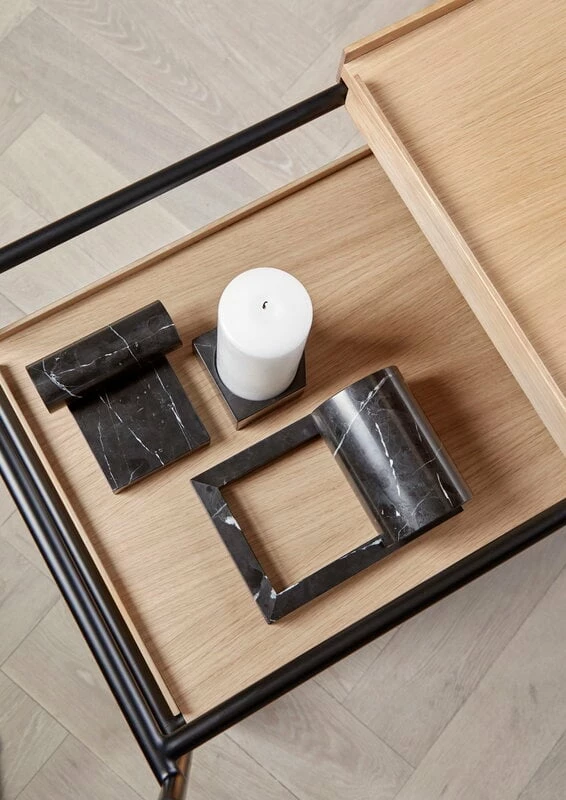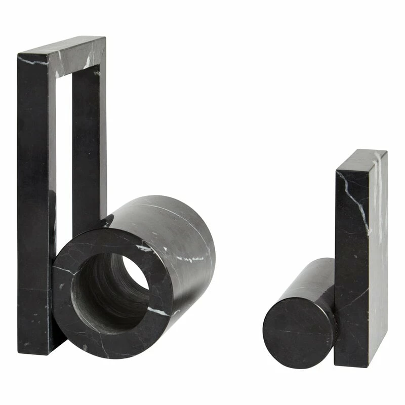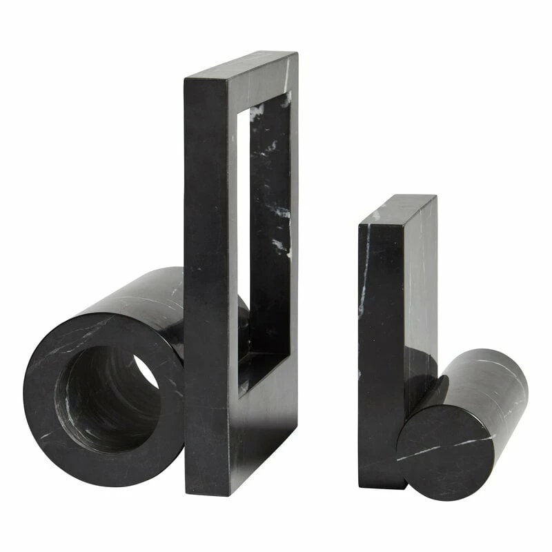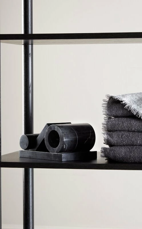 Woudin Booknd-kirjatuki on veistoksellinen koriste-esine, joka koostuu kahdesta osasta. Roel Vandebeekin suunnittelemat kirjatuet yhdistävät pyöreitä, sylinterimäisiä muotoja ja kulmikkaita linjoja toisiinsa – erilaisten geometristen muotojen välinen viehättävä vuoropuhelu hurmaa niin kirjahyllyssä kuin olohuoneen pöydälle aseteltunakin, kirjatuet joko erikseen tai yhdessä. Marmorin luonnollinen ilme vaihtuvine väreineen ja kuvioineen kruunaa Booknd-kirjatukien viettelevän kauniin ulkonäön.